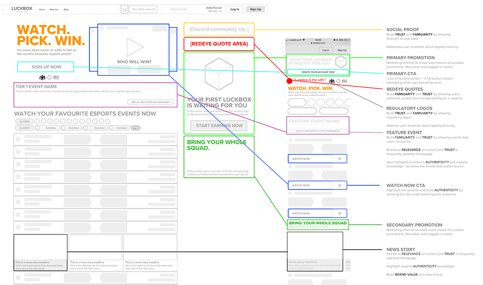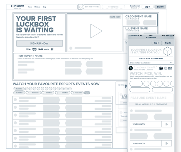 When tasked with designing the responsive homepage for Luckbox.com, I devised a design process that ensured the focus stayed on a user-centred approach, which also recognising the importance of business needs.